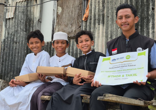 Balikpapan – Inisiatif Zakat Indonesia (IZI) Perwakilan Kalimantan Timur bersama Badan Dakwah Islam (BDI) Pertamina Hulu Kalimantan Timur menyalurkan sebanyak 110 paket berbuka puasa bagi santri dan jamaah musholla di Balikpapan, Kamis (5/3/26).