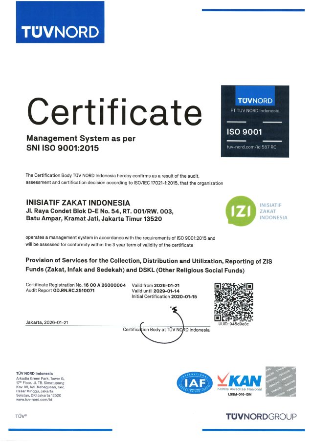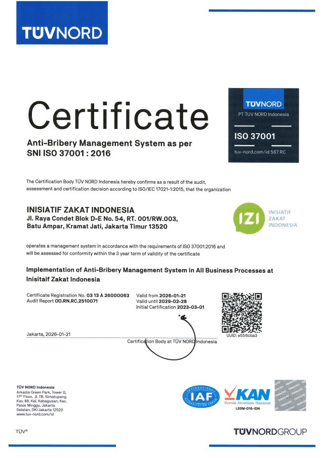 Ruang lingkup penerapan Sistem Manajemen Mutu dan Sistem Manajemen Anti Penyuapan di LAZNAS Inisiatif Zakat Indonesia mencakup seluruh proses bisnis di lembaga mulai dari aktivitas Pengumpulan, Pendistribusian dan Pendayagunaan,Pelaporan Dana ZIS (Zakat, Infak dan Sedekah) dan DSKL (Dana Sosial Keagamaan Lainnya).