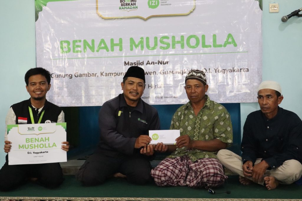 Yogyakarta – Menghidupkan kebahagiaan di bulan Ramadan, Lembaga Amil Zakat Nasional Inisiatif Zakat Indonesia (IZI) Kantor Perwakilan D.I. Yogyakarta menyalurkan program Zakat Fitrah dan Benah Musholla di Dusun Gunung Gambar, Kalurahan Kampung, Kapanewon Ngawen, Kabupaten Gunungkidul pada Senin (16/3/26). Bantuan ini disalurkan khusus untuk mendukung kebutuhan jamaah Muslim di Masjid An-Nur.
