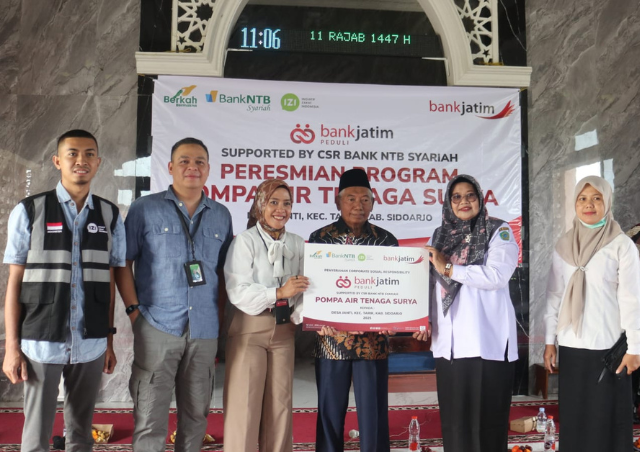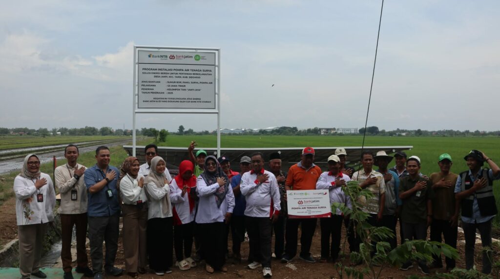 Sidoarjo (31/12/25) – Komitmen dalam mendukung ketahanan pangan dan peningkatan kesejahteraan petani terus diwujudkan melalui kolaborasi lintas lembaga. Bank Jatim bersama Inisiatif Zakat Indonesia (IZI) Jawa Timur, dengan dukungan CSR Bank NTB Syariah, secara resmi meresmikan dan melakukan serah terima Program Pompa Air Tenaga Surya (PATS) kepada Kelompok Tani di Desa Janti, Kecamatan Tarik, Kabupaten Sidoarjo.