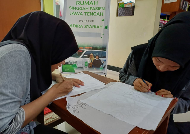 Semarang – Selepas Dzuhur, ruang tengah Rumah Singgah Pasien IZI Jawa Tengah tampak lebih ramai dari biasanya (30/10). Tujuh ibu-ibu penghuni rumah singgah berkumpul untuk mengikuti pelatihan keterampilan membatik yang dipandu oleh Endang dan Wiwik dari tim Wastra Batik Semarang. Suasana terlihat akrab dan penuh semangat sejak awal kegiatan dimulai.