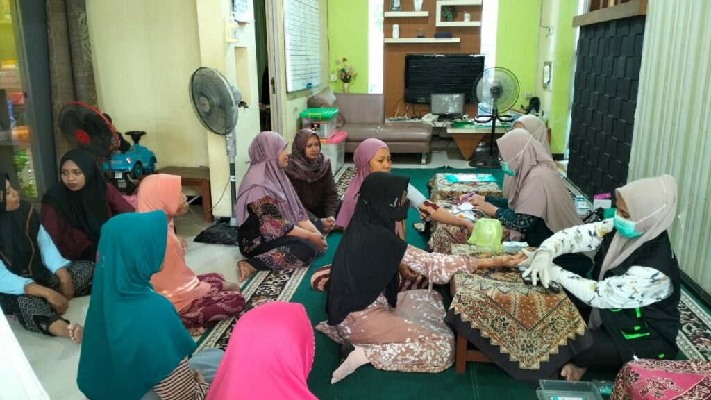 Program pemeriksaan kesehatan ini bertujuan untuk memantau kondisi pasien sekaligus memberikan edukasi tentang pentingnya menjaga pola hidup sehat selama masa pemulihan. Pemeriksaan meliputi cek gula darah, asam urat, dan kolesterol, yang dilakukan secara bergantian oleh para peserta dengan pendampingan langsung dari tenaga medis Klinik Pratama Hasna.
