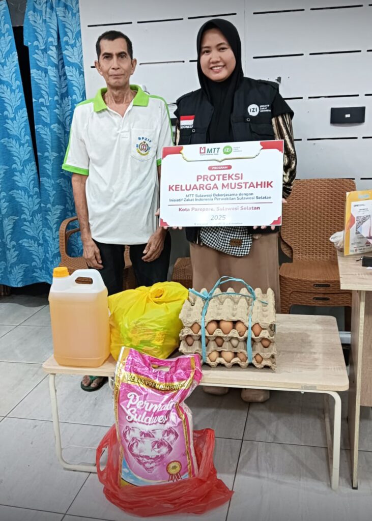 Makassar (19/10) – Inisiatif Zakat Indonesia (IZI) bersama Majelis Taqwa Telkomsel (MTT) kembali menunjukkan komitmennya dalam membantu masyarakat prasejahtera melalui program Proteksi Keluarga Mustahik. Program ini merupakan kelanjutan dari kegiatan yang telah diluncurkan bulan sebelumnya, dengan bentuk bantuan berupa paket sembako, perlengkapan tidur, bantuan biaya kesehatan, serta pembelian kursi roda bagi penerima manfaat.