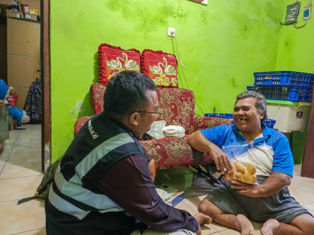 Semarang — Inisiatif Zakat Indonesia (IZI) Perwakilan Jawa Tengah melakukan supervisi dan monitoring perdana program pemberdayaan ekonomi difabel Majelis Telkomsel Taqwa (MTT) Regional Jateng–DIY kepada Slamet Puji Saroyo, seorang difabel penjual roti keliling berusia 62 tahun (25/11/25).