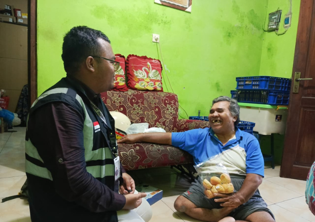 Semarang — Inisiatif Zakat Indonesia (IZI) Perwakilan Jawa Tengah melakukan supervisi dan monitoring perdana program pemberdayaan ekonomi difabel Majelis Telkomsel Taqwa (MTT) Regional Jateng–DIY kepada Slamet Puji Saroyo, seorang difabel penjual roti keliling berusia 62 tahun (25/11/25).