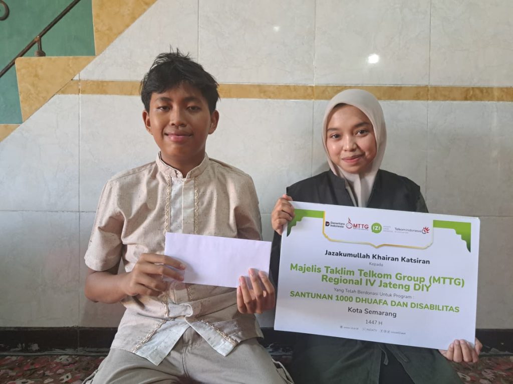 Semarang (18/3/26) – Inisiatif Zakat Indonesia (IZI) Kantor Perwakilan Jawa Tengah menyalurkan santunan bagi penyandang disabilitas dan anak yatim sebagai penerima manfaat program yang merupakan amanah dari Majelis Taklim Telkom Group (MTTG) Regional IV Jawa Tengah dan DIY.