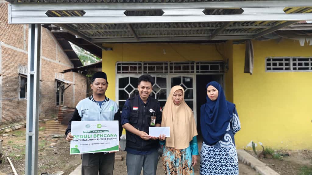 Bencana angin puting beliung yang terjadi beberapa minggu lalu menyebabkan sejumlah rumah warga di Kecamatan Bajeng mengalami kerusakan. Sebanyak delapan guru ngaji menjadi penerima manfaat bantuan, terdiri dari tujuh orang di Desa Pa’bentengan dan satu orang di Desa Paraikatte. Sebagian dari mereka tengah mengajar di TPA saat peristiwa terjadi, sehingga tidak sempat menyelamatkan barang-barang di rumahnya.