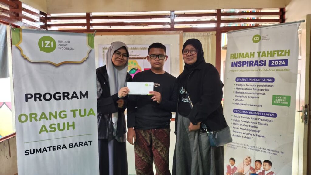 Agam – IZI Sumatera Barat menyalurkan bantuan melalui Program Orang Tua Asuh kepada santri Rumah Tahfizh Inspirasi (RTI) pada Sabtu (6/12/25). Sebanyak 13 penerima manfaat pada program kali ini. Kegiatan diawali dengan penjelasan singkat mengenai Program Orang Tua Asuh sebagai upaya memberikan pemahaman terkait tujuan dan mekanisme pelaksanaan program.