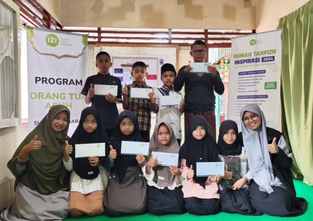 Agam – IZI Sumatera Barat menyalurkan bantuan melalui Program Orang Tua Asuh kepada santri Rumah Tahfizh Inspirasi (RTI) pada Sabtu (6/12/25). Sebanyak 13 penerima manfaat pada program kali ini. Kegiatan diawali dengan penjelasan singkat mengenai Program Orang Tua Asuh sebagai upaya memberikan pemahaman terkait tujuan dan mekanisme pelaksanaan program.