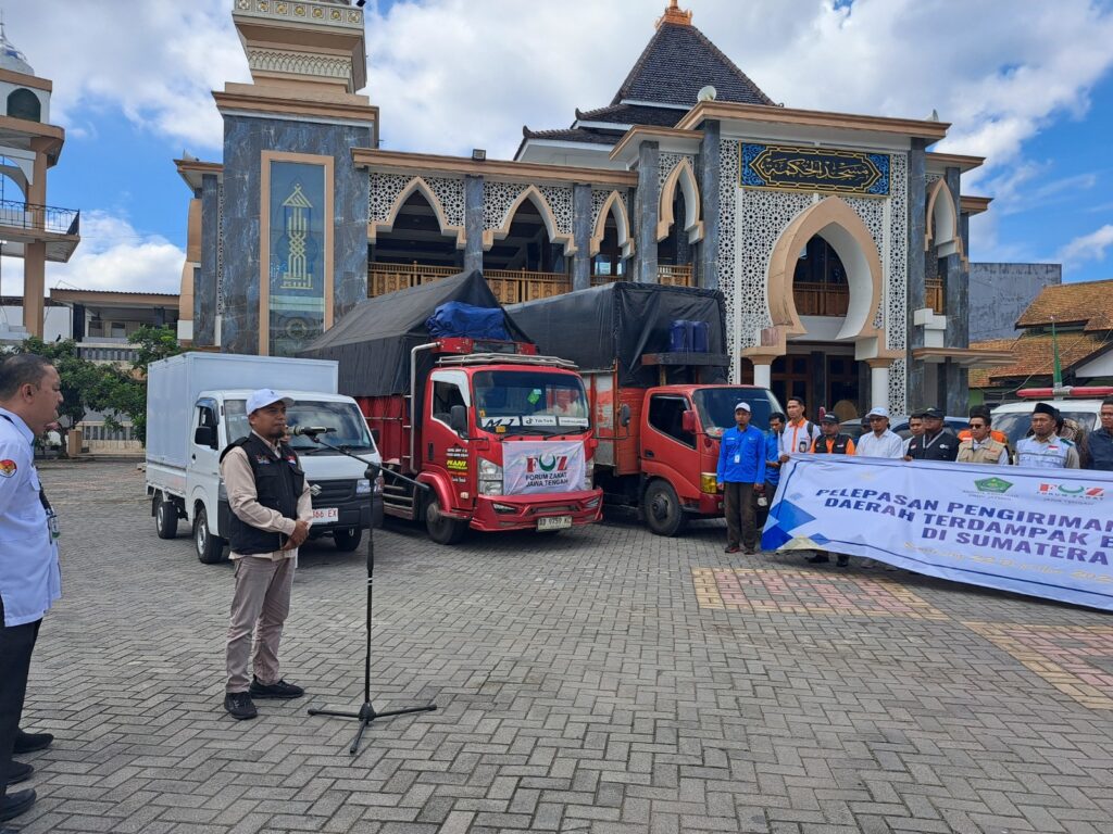 Kolaborasi Kemanusiaan: IZI, FOZ, dan Kemenag Jateng Lepas 2 Truk Bantuan untuk Sumatera dan Aceh