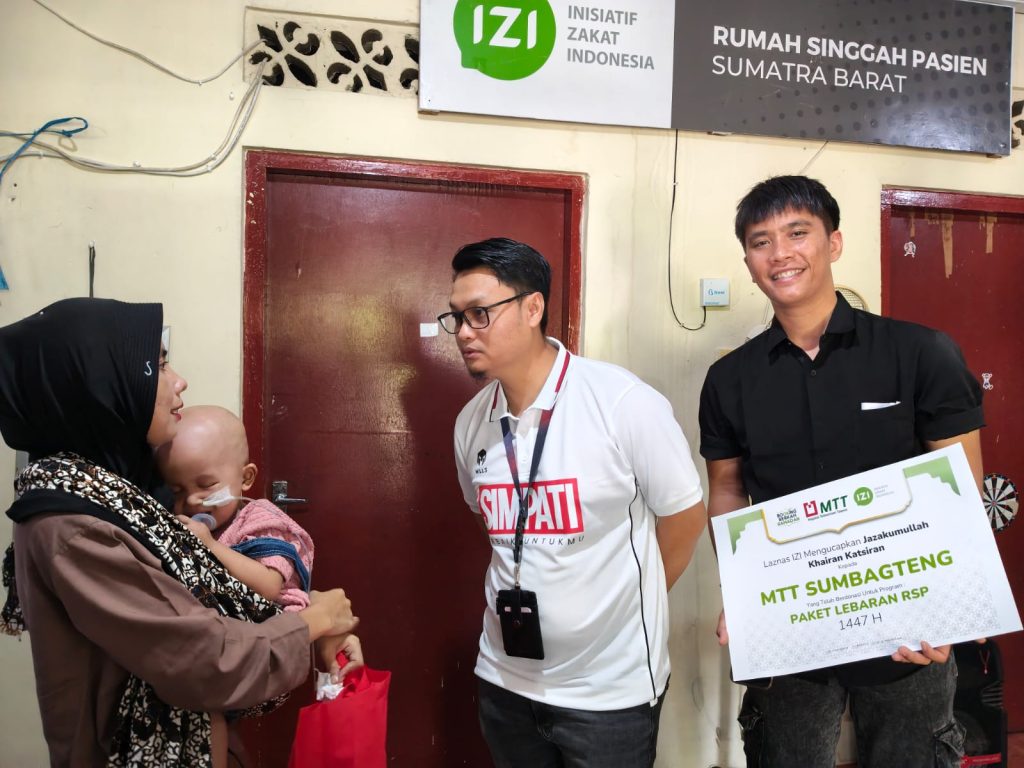 Padang (18/3/26) – Dalam rangka menyemarakkan bulan suci Ramadan, Majelis Telkomsel Taqwa (MTT) Sumbagteng bersama Inisiatif Zakat Indonesia (IZI) Sumatera Barat menyalurkan paket Ramadan kepada para pasien dan keluarga pasien yang tinggal di Rumah Singgah Pasien (RSP). Kegiatan ini merupakan bentuk kepedulian terhadap para pejuang kesehatan yang tengah menjalani pengobatan jauh dari kampung halaman.