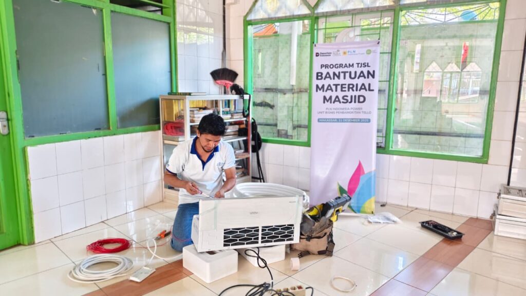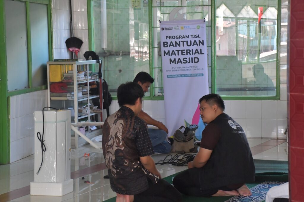 PLN UBP Tello dan IZI Sulsel Salurkan Bantuan Sound System dan Pendingin Ruangan ke Masjid Rahmatullah Muhammadiyah Tello Baru