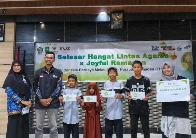 Pekanbaru (12/3/26) – Semangat berbagi di bulan suci Ramadan kembali diwujudkan melalui kegiatan Selasar Hangat Lintas Agama x Joyfull Ramadan dengan tema “Indonesia Berdaya Melalui Tebar Harapan Ramadan” yang dilaksanakan di Kantor Wilayah Kementerian Agama Provinsi Riau pada pukul 15.00 WIB. Kegiatan ini merupakan bentuk kolaborasi antara Kemenag Provinsi Riau bersama Forum Zakat Riau dan berbagai lembaga zakat di Provinsi Riau. Turut dihadiri oleh Ketua BAZNAS Provinsi Riau, Masriadi Hasan, dan Pembimbing Masyarakat (yang disingkat dengan pembimas) dari Agama Hindu dan Budha serta perwakilan lembaga zakat yang tergabung dalam FOZ Riau, termasuk Inisiatif Zakat Indonesia Perwakilan Riau.