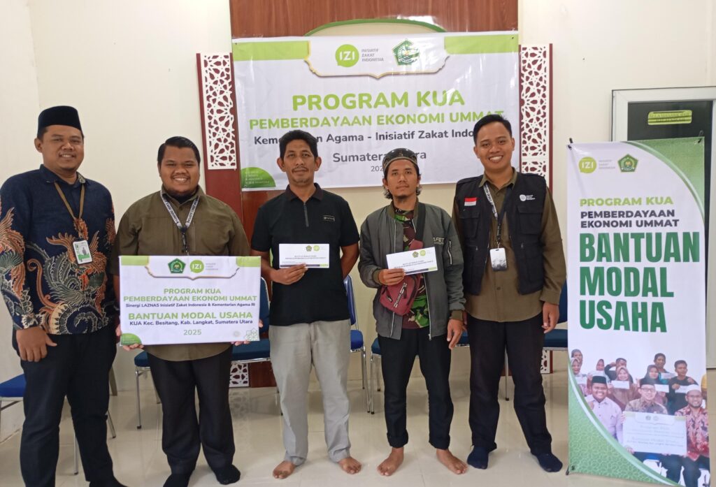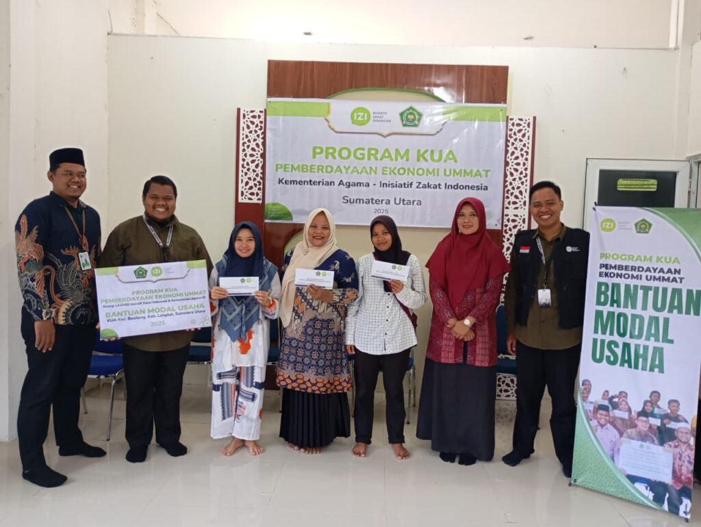 Besitang – Kementerian Agama Republik Indonesia (Kemenag RI) bersama LAZNAS Inisiatif Zakat Indonesia (IZI) Sumatera Utara kembali menyalurkan bantuan modal usaha tahap kedua kepada keluarga penerima manfaat di lingkungan Kantor Urusan Agama (KUA) Kecamatan Besitang, pada Rabu (22/10/25).