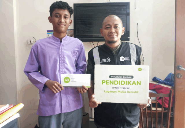 Jakarta Selatan — Yuanita Rohali bersama Inisiatif Zakat Indonesia (IZI) menyalurkan bantuan keringanan pendidikan sebesar Rp500.000 kepada Vicky Sulistyo,...