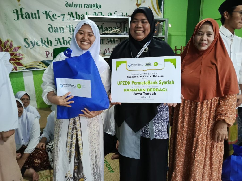 Semarang (16/3/26) – Dalam semangat berbagi kebahagiaan di bulan suci Ramadan 1447 H, UPZDK Permata Bank Syariah bersama Inisiatif Zakat Indonesia (IZI) Kantor Perwakilan Jawa Tengah menyalurkan program Ramadan Berbagi 1447 H kepada para santri dan santriwati penghafal Al-Qur’an di Pondok Pesantren Tahfidz Al Mabrur Semarang. Program ini berupa paket sembako, santunan pendidikan, dan ifthor takjil untuk mendukung kebutuhan para santri selama menjalani ibadah dan aktivitas menghafal Al-Qur’an di bulan Ramadan.