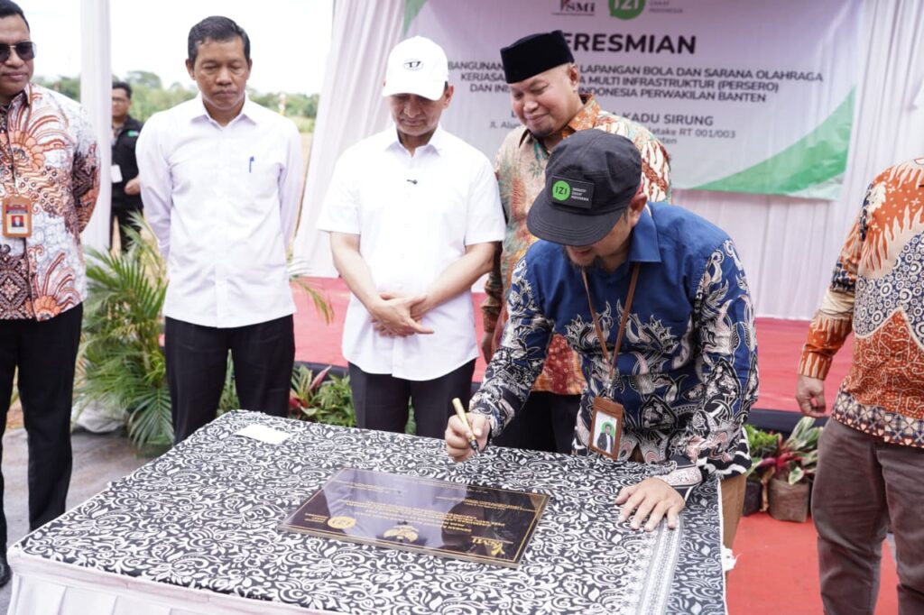 Tangerang (13/11/25) — Wakil Gubernur Banten, Ahmad Dimyati Natakusuma, meresmikan program Rehabilitasi Lapangan Sepakbola dan Fasilitas Olahraga, yang merupakan program TJSL PT Sarana Multi Infrastruktur (Persero) atau PT SMI, yang menggandeng LAZ Inisiatif Zakat Indonesia (IZI) Perwakilan Banten, di Lapangan Sepak Bola Desa Kadu Sirung yang berlokasi di Kecamatan Pagedangan, Kabupaten Tangerang, Provinsi Banten.