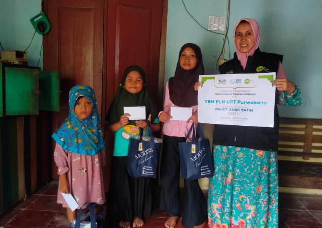 YBM PLN UPT Purwokerto dan IZI Jateng berikan Paket Anak Yatim Hadirkan Kebahagiaan di Banyumas